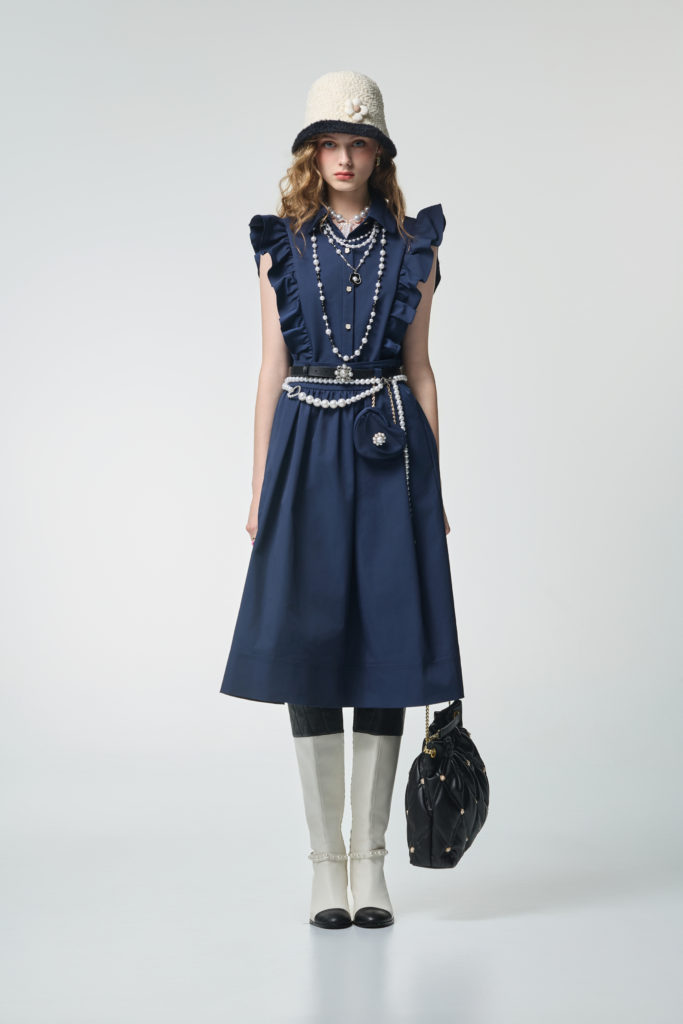 本季 iROO 以石英粉及海軍藍灰的冷暖對比靈活運用,打造出法式甜美與復古俏麗的多變氛圍,將浪漫女人的可愛與海軍風格的理性完美融合,在甜美中藏著俐落、浪漫裡帶著自信的優雅姿態。
