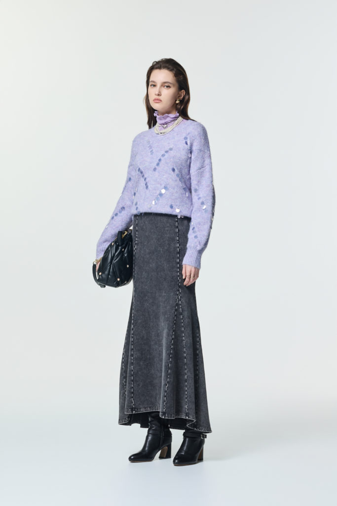 本季紫調不再甜膩,各種面料材質以柔霧光澤呈現沉靜優雅。薰衣草紫透過細緻色階延展,在理性與浪漫間取得完美平衡;注入星光閃閃的亮鑽元素,輕奢光影隨步伐流動,為冬季造型注入溫柔卻堅定的女性力量!