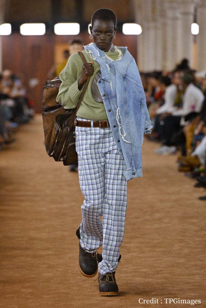 巧妙運用春日重點色彩點亮造型,讓旅行中的每個瞬間都時髦在線。酸橙綠針織上衣象徵春日甦醒的生命力,外搭微光藍丹寧外套,巧妙平衡冷暖色調,同時為整體注入率性自由的前衛氣息;下身搭配微光藍格紋長褲,層次堆疊之間,展現專屬個人風格的魅力輪廓。